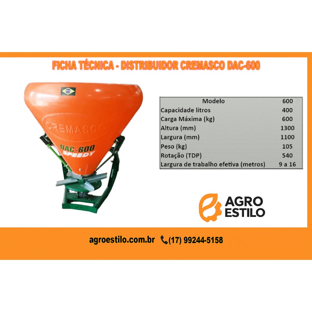 • Adubadeira DAC-600 Agro Estilo – Distribuição Precisa de Adubo com Alto Rendimento