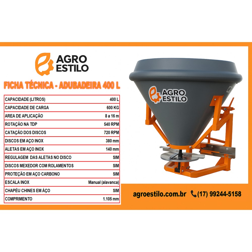 ADUBADEIRA HIDRÁULICA 600 KILOS - AGRO ESTILO
