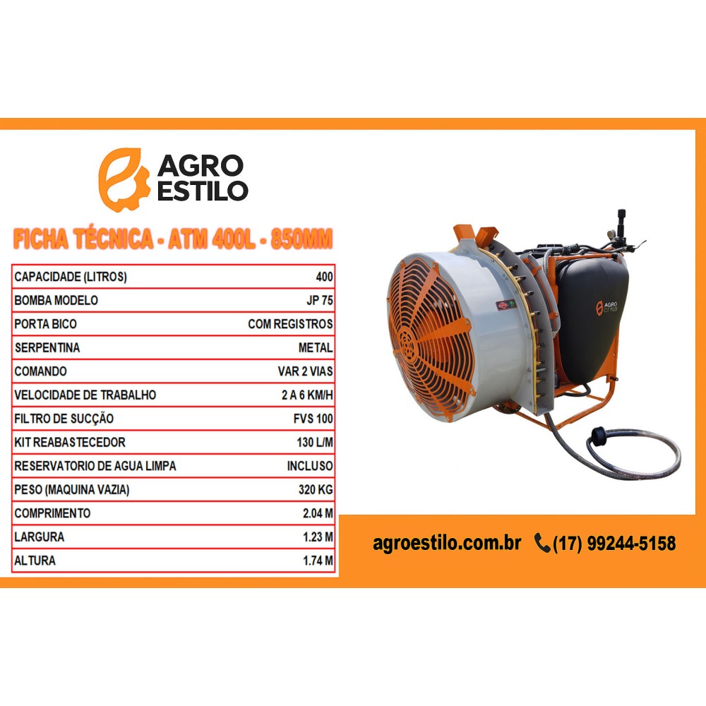 Com a qualidade e tecnologia da AGRO ESTILO, o Pulverizador de Turbina 850mm é a escolha certa para o produtor que busca eficiência, robustez e resultados profissionais no campo.