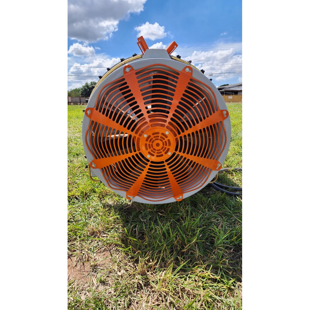 A turbina de 850mm com hélice de 16 pás proporciona excelente cobertura da pulverização, ideal para pomares e culturas de porte médio a alto. Possui serpentina com 12 bicos de cada lado e porta-bicos com registro, permitindo regulagem e manutenção facilitada. O kit reabastecedor completo complementa o conjunto, otimizando o processo de preparo da calda.