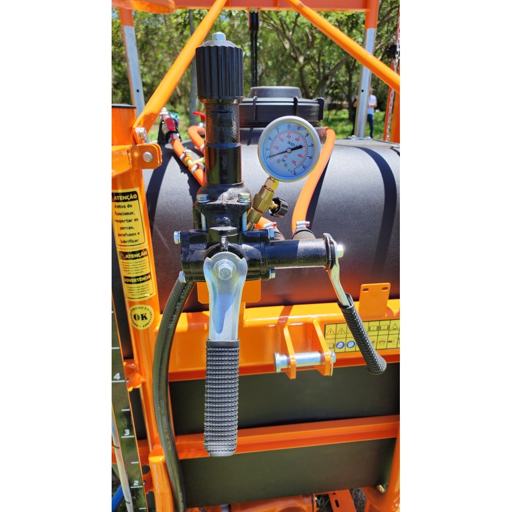O pulverizador possui tanque de 600 litros, fabricado em polietileno de alta densidade, material conhecido por sua elevada resistência química e mecânica. Esse tanque garante maior durabilidade e segurança no manuseio de defensivos agrícolas, reduzindo custos de manutenção e evitando corrosão.