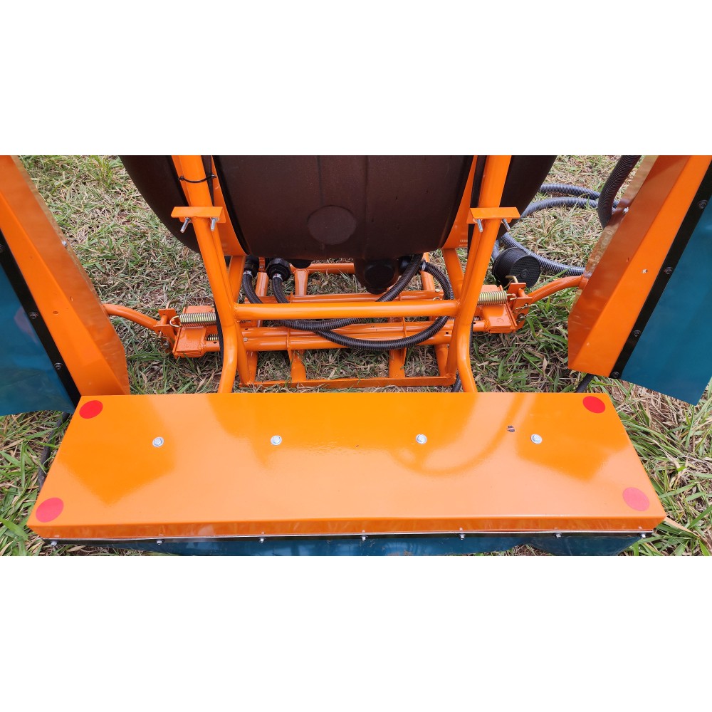 A barra protegida anti-deriva assegura pulverização precisa e segura, com barra central de 1,45 m de faixa de aplicação e barras laterais de 45 cm com molas, oferecendo melhor cobertura e uniformidade na aplicação de defensivos agrícolas.