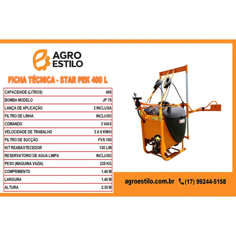 • PULVERIZADOR STAR PEK 400 LITROS PECUÁRIO - AGRO ESTILO